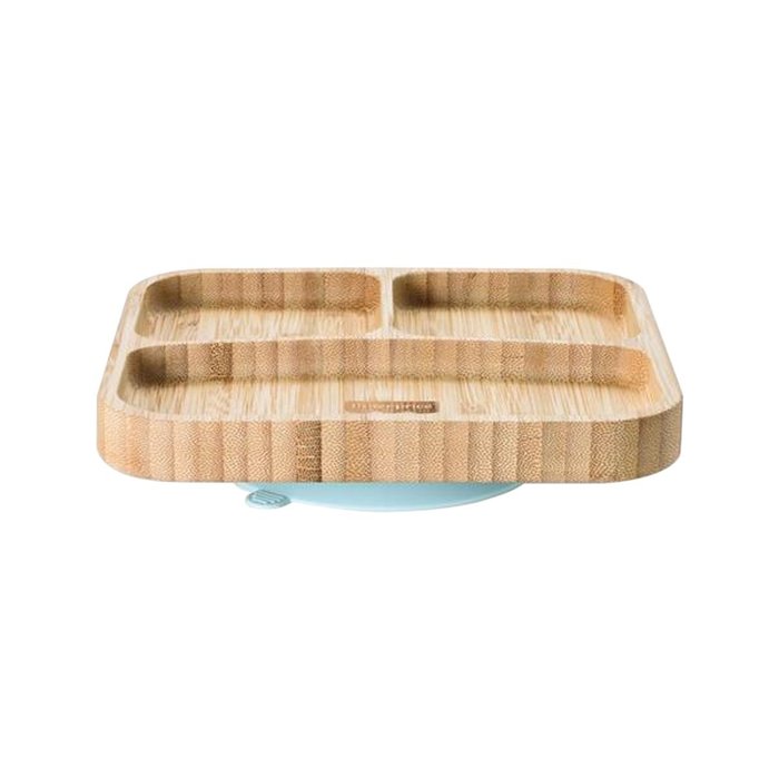 Prato Quadrado C Divisórias e Ventosa Para Alimentação Infantil Bebê 6 Meses Bambu e Silicone