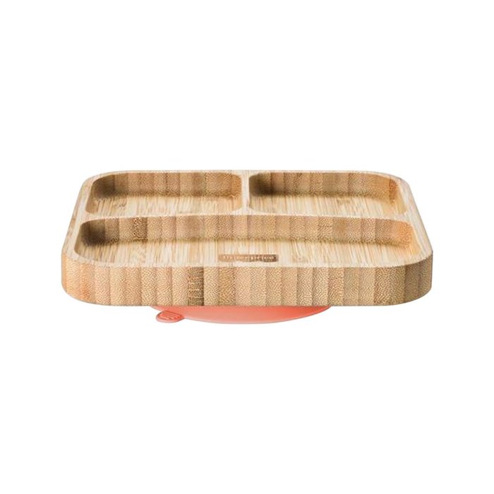 Prato Quadrado C Divisórias e Ventosa Para Alimentação Infantil Bebê 6 Meses Bambu e Silicone