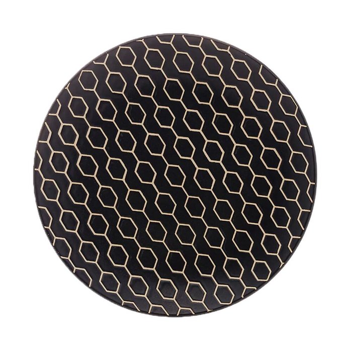 Prato Raso 27cm Colmeia Preto e Dourado Cerâmica Lyor