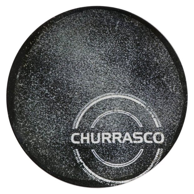 Prato Raso para Churrasco Tramontina em Porcelana Decorada 25cm Churrasco Carbon Avulso.