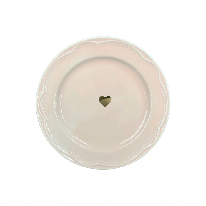 Prato de Porcelana esmaltado rosa com coração ouro no meio.