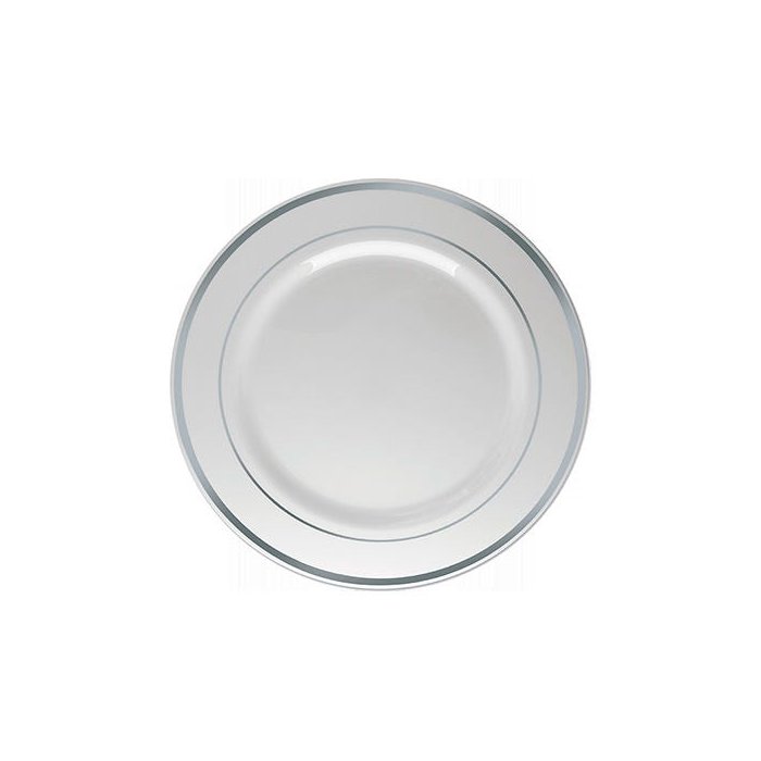 Prato Sobremesa Descartável Branco com Borda Prata 12unid