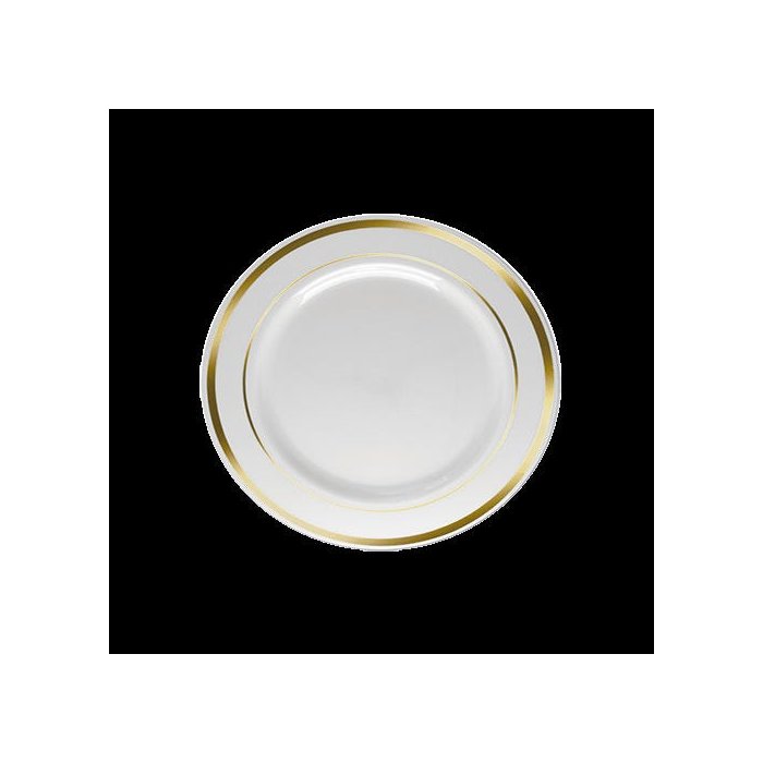 Prato Sobremesa Descartável Branco com Borda Prata 18unid