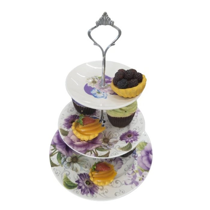 Prato Suporte Porta Doces Cup Cakes Bolos Petisco Salgados Buffet 3 Andares de Porcelana