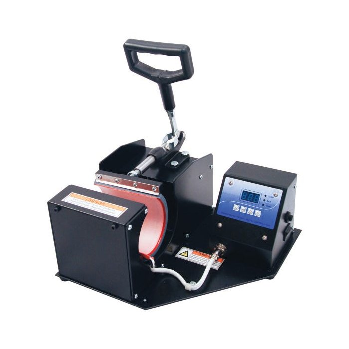 Prensa térmica de fácil manuseio, ideal para estampar canecas em cerâmica ou vidro, squeezes e demais materiais resinados para sublimação. Com regulagem especial, esta resistência suporta transfer tanto em canecas cilíndricas quanto em squeezes cilíndricos!