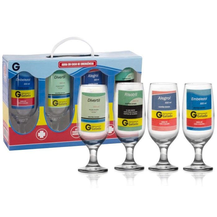 Presente Maleta 04 Taças Floripa Remédio Genérico Divertidos transparente