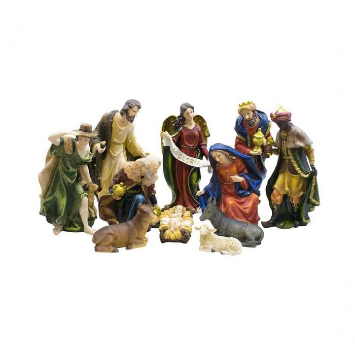 Presépio 11 Peças 30cm - Enfeite ResinaEnfeite decorativo em forma de imagem de presépio com 11 peças, cores reais. A peça mais alta tem 30 cm de altura. Material: resina dimensõesPeso (Kg): 4.00