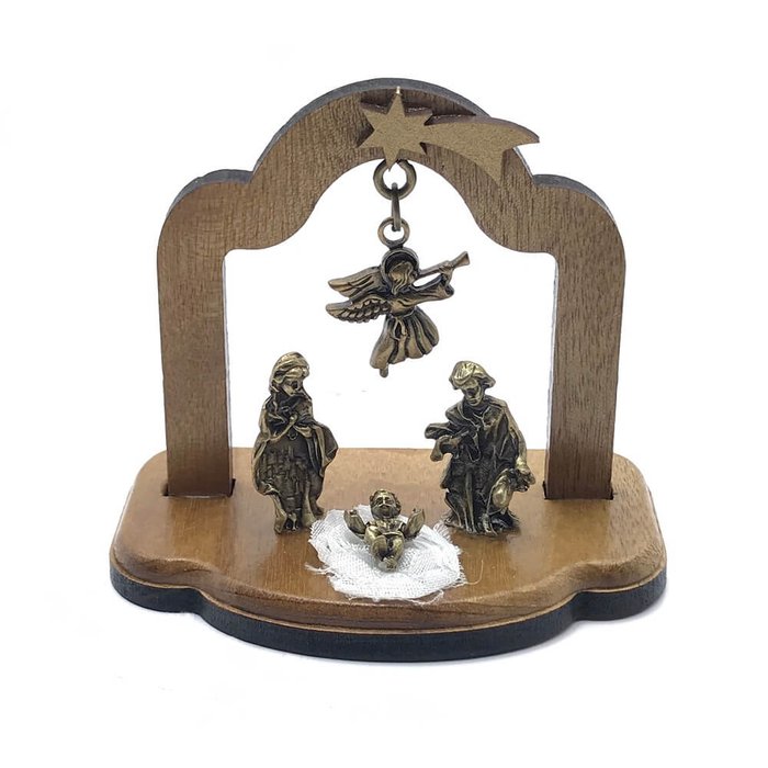 Presépio de Madeira com Arco Oval No tempo do Natal é comum, por onde andamos, encontramos lindos presépios. Lojas, shoppings, igrejas e também nas casas é comum que os católicos – e até quem não é cristão – preparem um lugar especial para montar a cena no nascimento do Menino Jesus. O primeiro presépio Conta-se que o primeiro presépio foi montado em 1223, na Itália. E aqui revelamos a primeira curiosidade: seu autor foi São Francisco de Assis. O Santo utilizou peças confeccionadas em argila para representar os personagens. Além disso, segunda curiosidade, ele ilustrou a cena com animais vivos: um boi e um jumento. Significado do presépio Mas como foi que São Francisco teve essa ideia tão significativa para os cristãos? A história narra que ele queria encontrar uma forma mais simples de explicar aos camponeses de sua região como foi o nascimento de Jesus, visto que eles não conseguiam compreender a narrativa bíblica. Foi então que ele decidiu que a celebração do nascimento, naquele ano, não aconteceria na Igreja, mas sim – terceira curiosidade – num bosque. São Francisco pensou cuidadosamente em cada personagem, de maneira que até mesmo a participação dos animais na cena tem uma explicação. Detalhes do produto Madeira | Metal em ouro velho | Medidas aprox. 8,7 cm x 7 cm x 5 cm Embalagem: caixinha personalizada