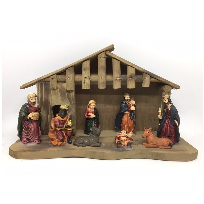 Personagens inclusos: José, Maria, 3 Reis Magos, 01 Burro, 01 Vaca e o Menino Jesus.