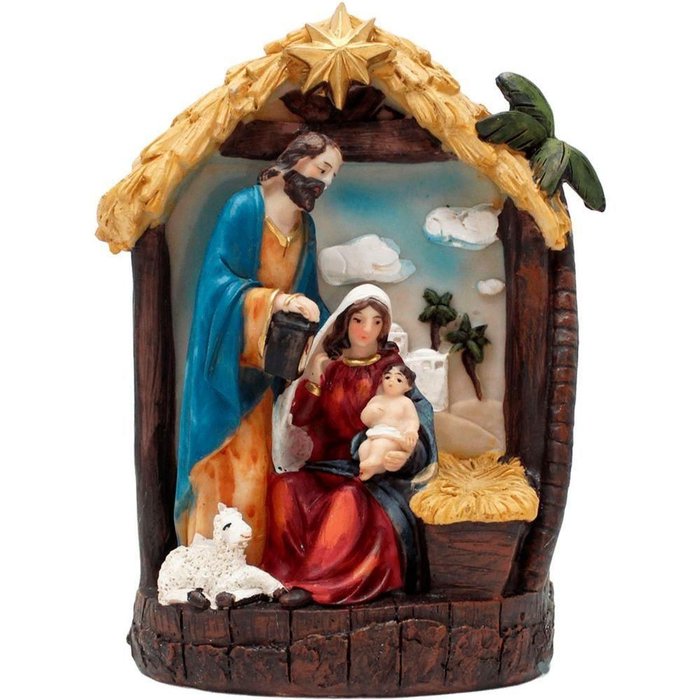 Presépio Sagrada Família Nascimento Jesus Manjedoura de 20cm Colorido