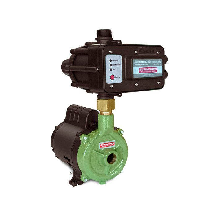 A Motobomba Pressurizadora Residencial Schneider SP-12C é um sistema com controlador eletrônico de pressão, ideal para residências. A bomba funciona em pressurização de cima para baixo ou de baixo para cima; possui funcionamento automático; o produto vem pronto para instalar e dispõe de proteção contra falta de água.