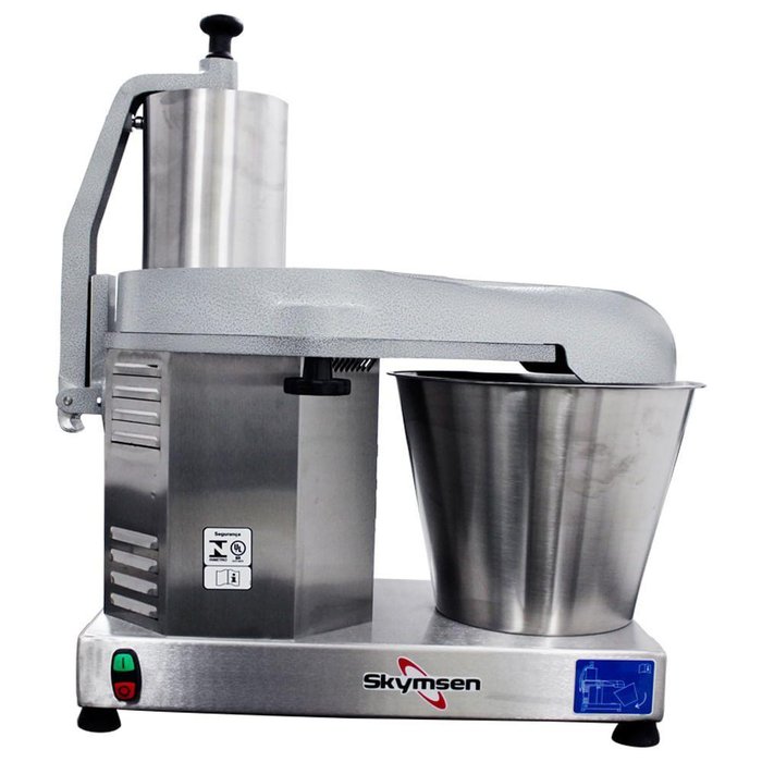 Processador de alimentos com 6 Discos PA14N Skymsen. Conhecido por sua alta produtividade, PA-14-N é o processador de maior capacidade da linha e capaz de realizar diversos tipos de cortes. Com produção aproximada de 400kg/h, ele fatia, rala e desfia grandes quantidades, como por exemplo peças de queijos inteiras em segundos. Ideal para supermercados e pizzarias com grande produção, que necessitam velocidade na hora de processar alimentos. O processador Skymsen acompanha 6 discos: Fatiador de 1,5 mm, fatiador de 3 mm, ralador, desfiador de 3 mm, desfiador de 5 mm e desfiador de 8 mm. Para garantir a produtividade no preparo das receitas, todos os componentes que incorporam o processador de alimentos o PA-14-N são construídos com materiais criteriosamente selecionados para cada função. POTÊNCIA NOMINAL: 1.047 W. POTÊNCIA DO MOTOR: 1 CV. CONSUMO: 1,05 kW·h. FREQUÊNCIA: 60 Hz. ROTAÇÃO: 510 rpm. PRODUÇÃO APROXIMADA: 400 kg/h. DIÂMETRO DO DISCO: 429 mm. PESO: 99,00 kg. DIMENSÕES(CxAxL): 52x77,5x71 cm. Desenvolvido em conformidade com as especificações da norma NR-12 e do Inmetro. Processador de alimentos com 6 Discos PA14N Skymsen é na Atau.
