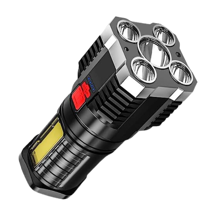 Lâmpada de lúmens super brilhante é atualizada 4 vezes mais, cada lâmpada contém 2 núcleos, não total de 8 núcleos pheno, que pode produzir grande potência e eliminar a escuridão. Ele pode manter até 5 horas de operação depois de totalmente carregado. Feito de plástico de engenharia, durável e leve.2. Projeto EspecialLanterna recarregável com 5 lâmpadas LED, os grânulos da lâmpada LED são distribuídos uniformemente na cabeça da lâmpada, a lanterna tem uma grande capacidade de foco. Quando você precisar trabalhar, ler e reparar itens, o design deste produto não machucará seus olhos. 5 modos podem ser ajustados, luz forte, luz média, flash estroboscópio e luz de inundação (luz lateral).3.Bateria de grande capacidadeNuclear Power18650, que pode funcionar por 5 horas depois de totalmente carregada. 5 lâmpadas super brilhantes formam uma lanterna LED que emite um feixe de luz e ilumina sem esforço qualquer lugar que você conte. O feixe pode atingir uma altura de 1.600 pés (dependendo do ambiente). A bateria possui uma lanterna interna, você pode carregá-la quando a bateria estiver fraca e, em seguida, a luz indicadora de energia azul acende.4. Multifuncionalimpermeável, à prova de choque, robusto, pode suportar quedas acidentais e imersão temporária. A melhor ferramenta para casa, dia após dia ou para passear com o cachorro. As luzes laterais são úteis para observação de perto. Você pode contar com esta luz para leitura diária, passear com seu cachorro à noite, camping ao ar livre, quedas de energia e qualquerEspecificação:Matéria: ABSTamanho: cerca de 6*6*14 cmCapacidade da bateria: 1200mAFonte de alimentação: carregamento usbForma de fonte de luz: LEDAmbiente aplicável: caminhadas, camping, pescaria etc.Incluído no Pacote:1 * Cabo USB1 * lanternaNote:A lanterna LED CBSana é controlada pelo botão de ciclo, uma pressão para o modo forte, duas pressionadas para o modo médio, três pressionadas para o modo flash, quatro pressionadas para ligar a luz lateral, pressione novamente para desligar a lanterna no modo de luz lateral.