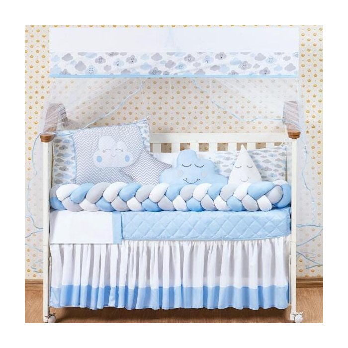 Protetor De Berço Americano Nuvem 12 Peças Com Saia Box Azul Azul