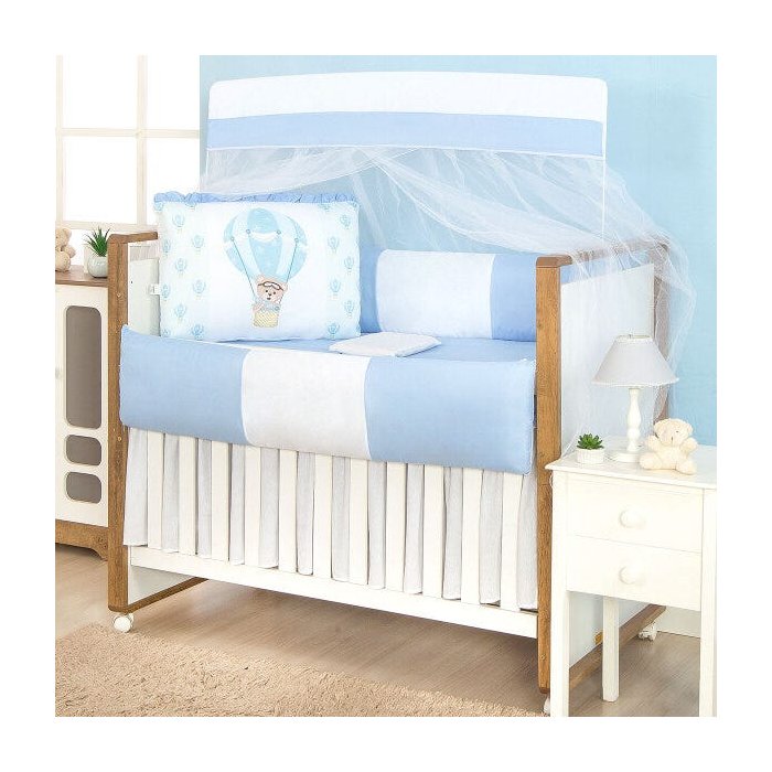 Protetor de Berço Azul Estampado 9 Peças Padrão Americano