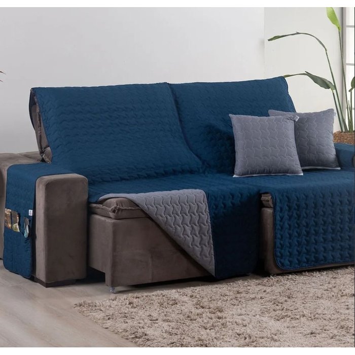 Protetor de Sofá 2,20m Retrátil D.f. Almofada Marinho Cinza