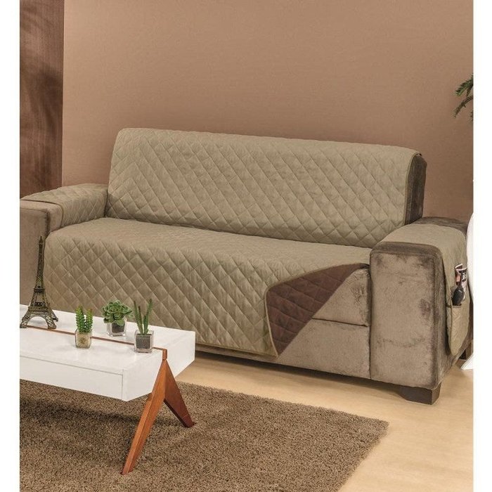 Confeccionado com tecido superior e inferior microfibra, enchimento em 100% poliéster e com acabamento em viés, agora a qualidade e o conforto do seu sofá estão garantidos. Matelado em formato de losangos, tamanho 5x5, o tecido do seu protetor fica mais firme, trazendo sofisticação, beleza e conforto ao seu sofá. Além disso, outra grande vantagem deste lindo protetor é que ele é 'dois em um', pois ele possui dupla face e pode ser usado dos dois lados, com cada lado de uma cor, para você poder variar ainda mais o visual do seu ambiente, sempre que quiser. Cada protetor possui porta objetos em um dos braços do sofá, podendo ser utilizado nas duas faces. Além disso, o protetor garante alta proteção ao seu sofá, conservando-o muito mais, por um tempo prolongado.