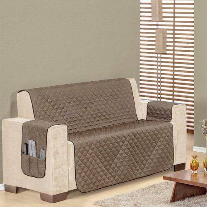 Protetor de sofá Dupla Face 3 Lugares Caqui/Marrom