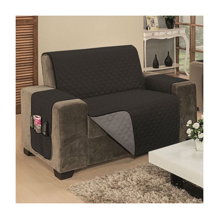 Protetor de Sofá Impermeável 3 Lugares Avulso Dupla Face Preto/Cinza