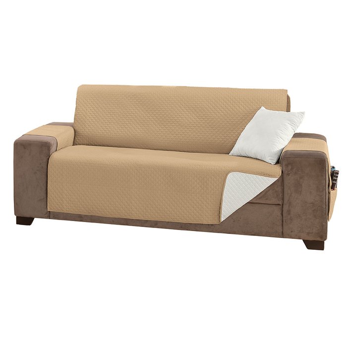 Protetor de Sofá King 4 Lugares Impermeável 100% Poliéster:cáquipalha