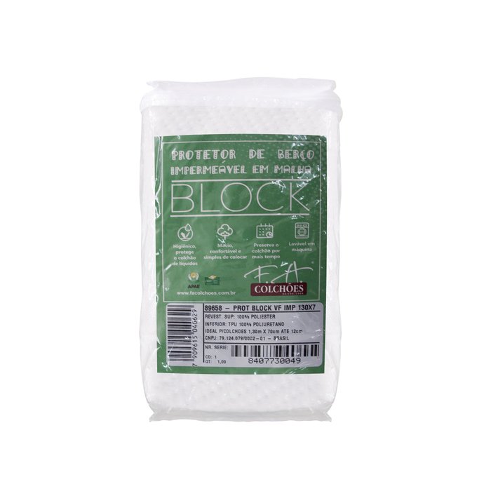 Protetor Impermeável de Malha Block para Colchão Infantil, com slip com elástico em toda a lateral, medida infantil 070 x 130 x 012 cm.