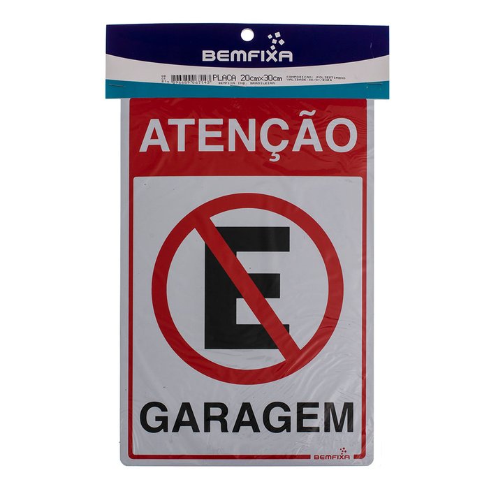 A Placa Sinalizadora Atenção Garagem é autoadesiva e fabricada em poliestireno.