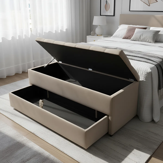 Puf Baú com Gaveta (sapateiro) Queen 160x50x45cm Cor Areia - Elegância e Conforto para o Seu Lar Areia