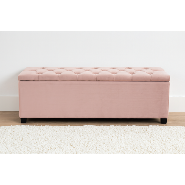 Puf Baú Estofado Casal Tamanho de 140x40x45cm Rosa - Tecido em Veludo Suede Liso - Alta Qualidade Rosa