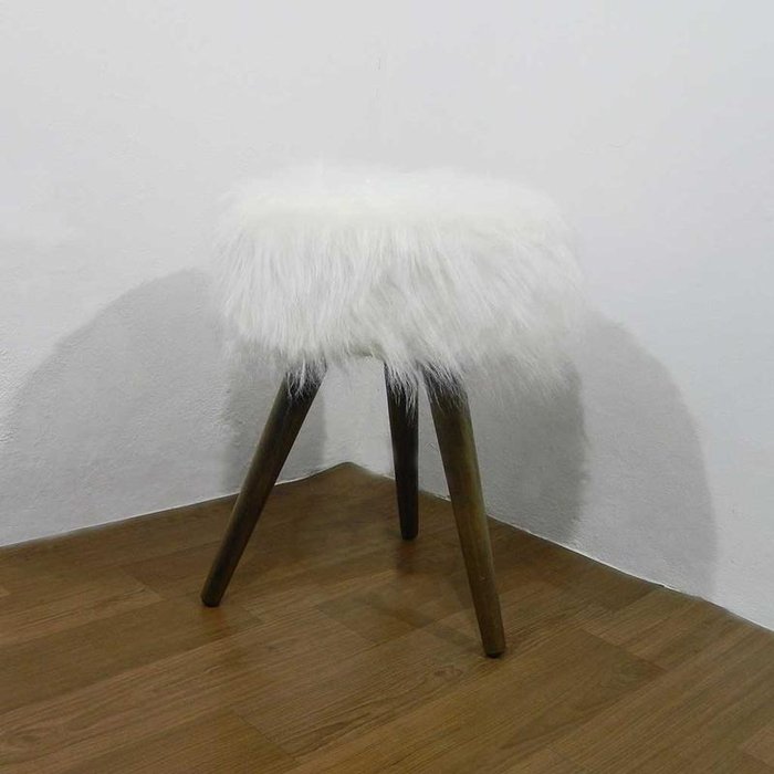 Pufe Detroit Redondo Peludo Cru com Pé Palito