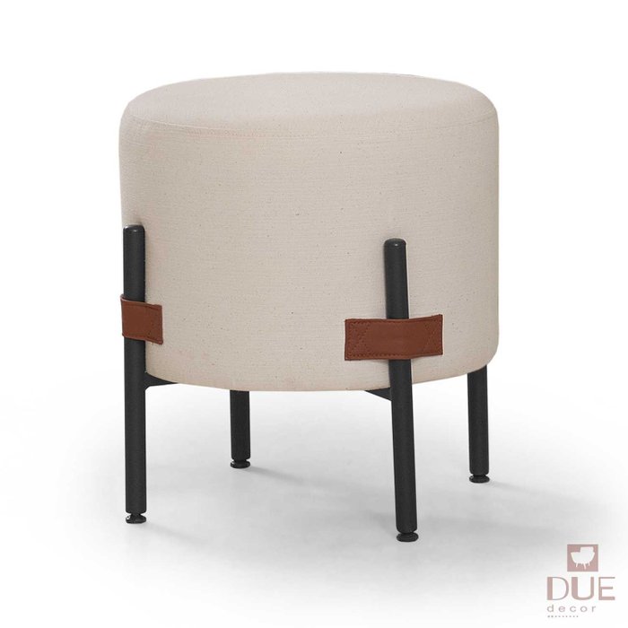 Pufe Estilo Industrial Redondo Pés Metal Londres - Linho Cru