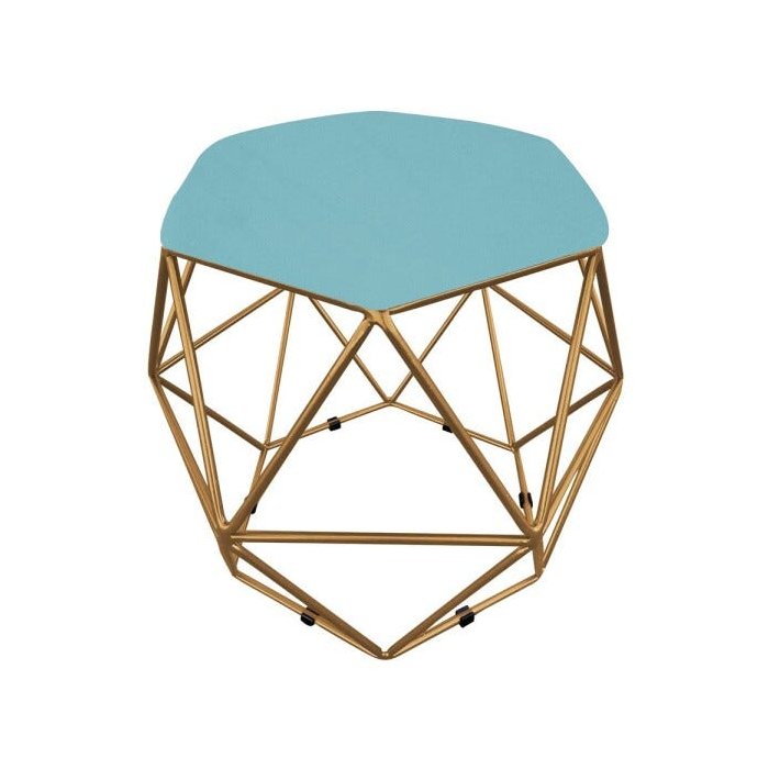 Puff Aramado Hexágono Suede Base Dourado D'Rossi - Azul Turquesa Azul Turquesa
