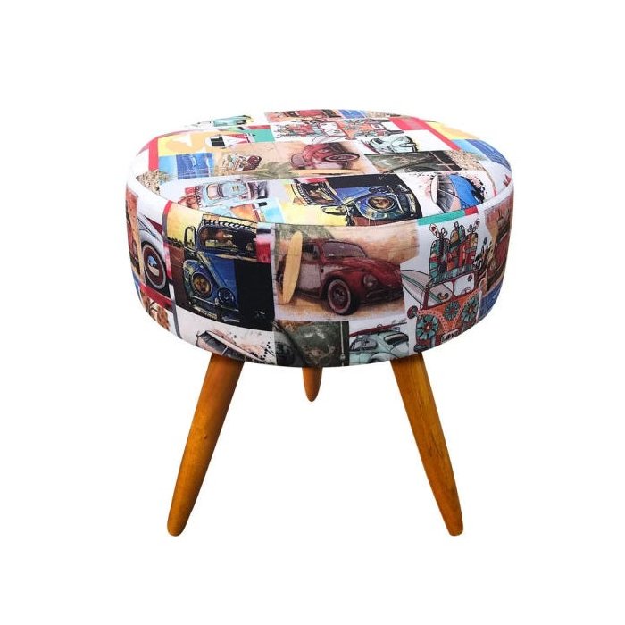 Puff Banqueta Berlim Redondo Estampado Pés Castanho - Fusca Fusca