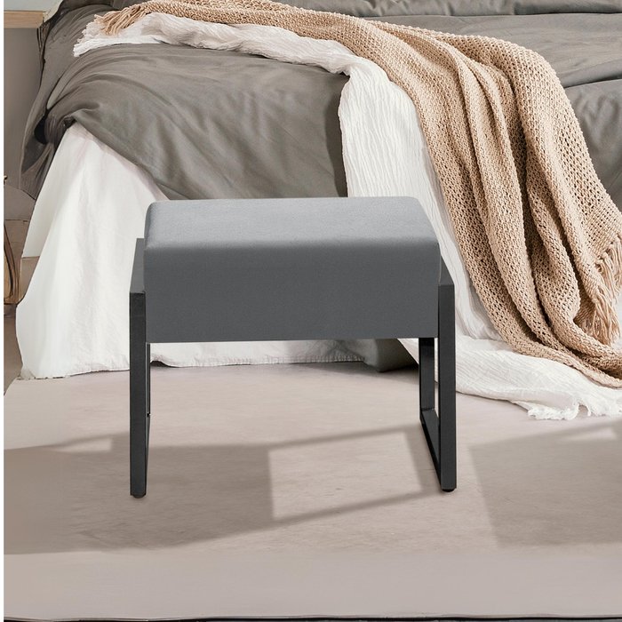 Puff Banqueta Cancún Retangular Sala Estar e Recepção Veludo Cinza