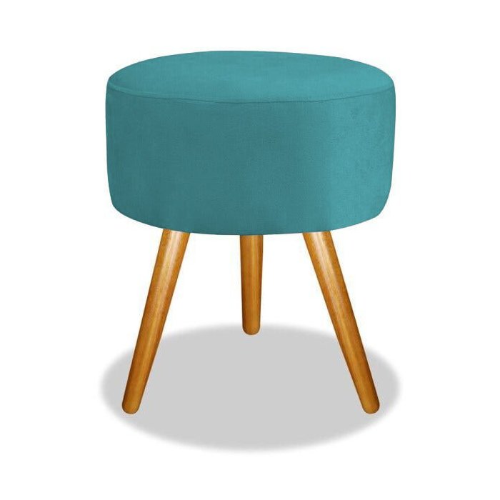 Puff Banqueta Decorativo Redondo Pés Palito Azul Tiffany