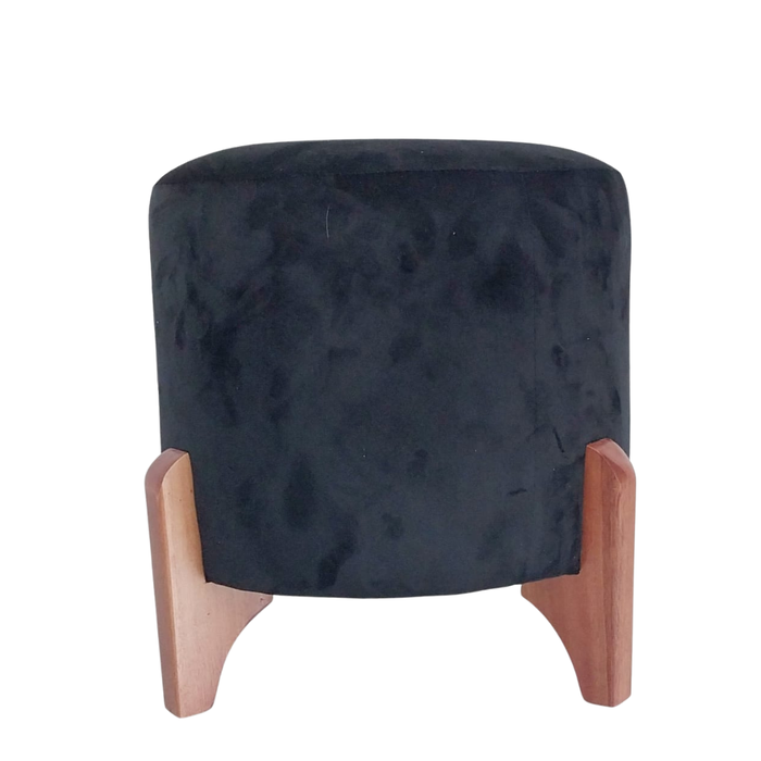 Puff Banqueta Decorativo Redondo Soho Pes de Madeira Preto Preto