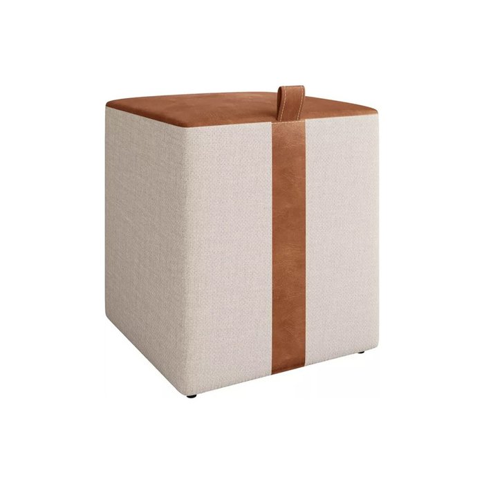 Puff Banqueta Éros Linho Bege com Couro Caramelo Luxo - Ms