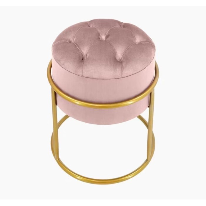 Puff Banqueta Estofado Decorativo Base de Ferro Capitonê Suede Rosa do Lar Móveis e Decoração