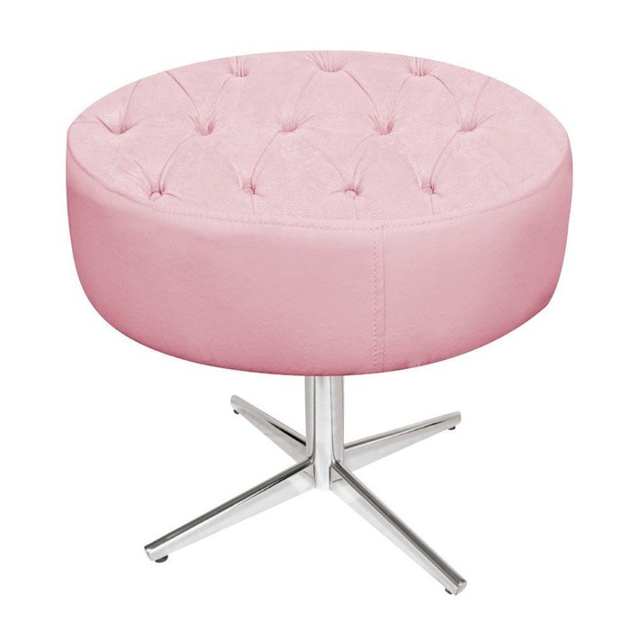Puff Banqueta Nanda Base Giratória de Metal Suede Rosa Bebê - DAMAFFÊ MÓVEIS
