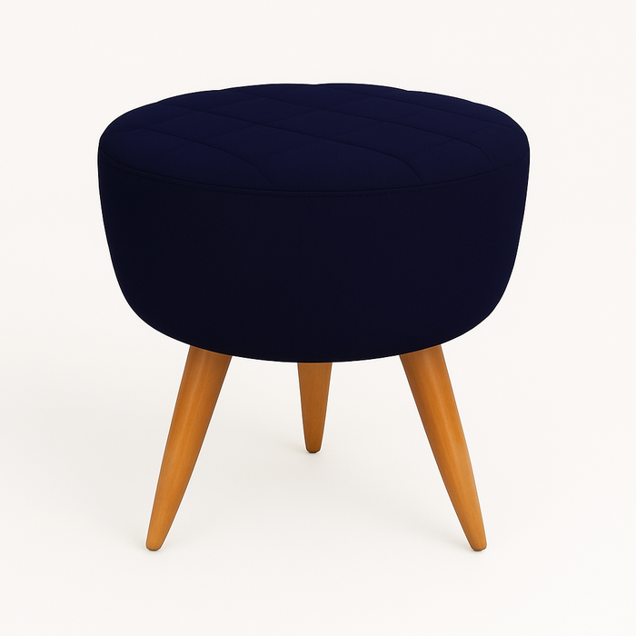 Puff Banqueta Redondo Azul Marinho Pé Palito com Detalhe em Costura