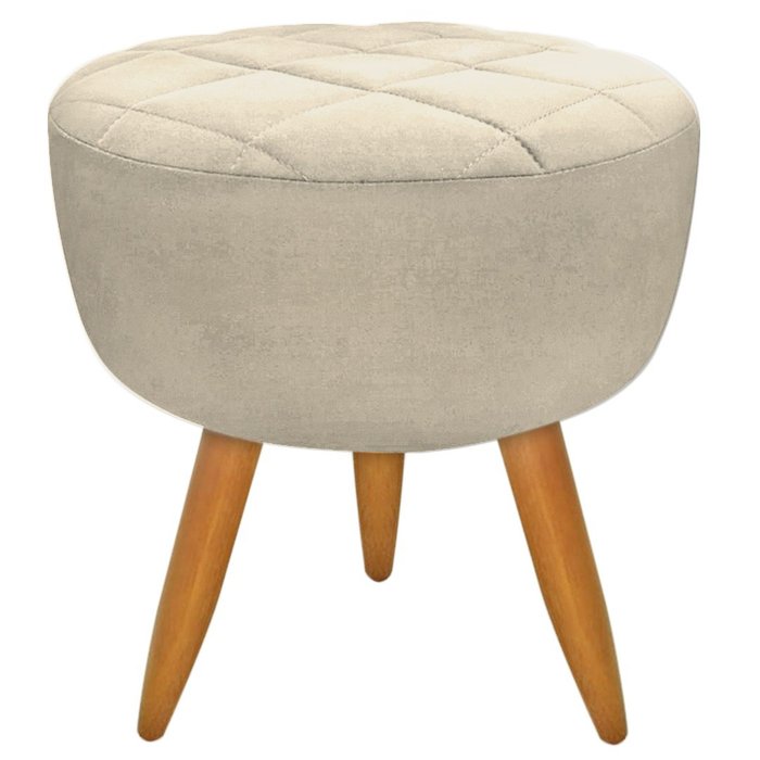 Puff Banqueta Redondo Maite Para Sala Quarto Pé Natural Suede:Bege