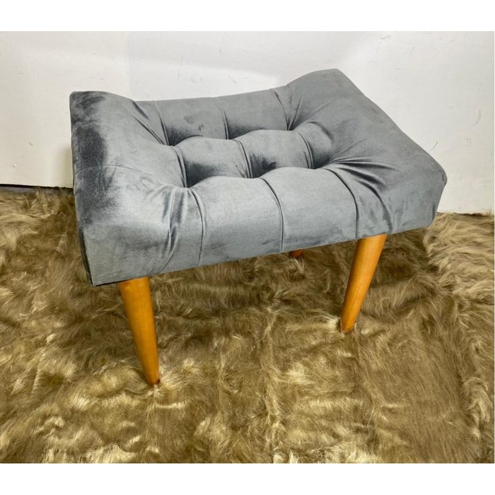 Puff Banqueta Retangular Decorativo com Pés Palito - Cinza Veludo