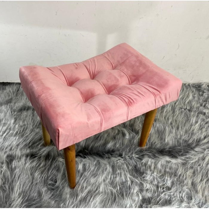 Puff Banqueta Retangular Decorativo com Pés Palito - Rosa Claro Veludo ROSA