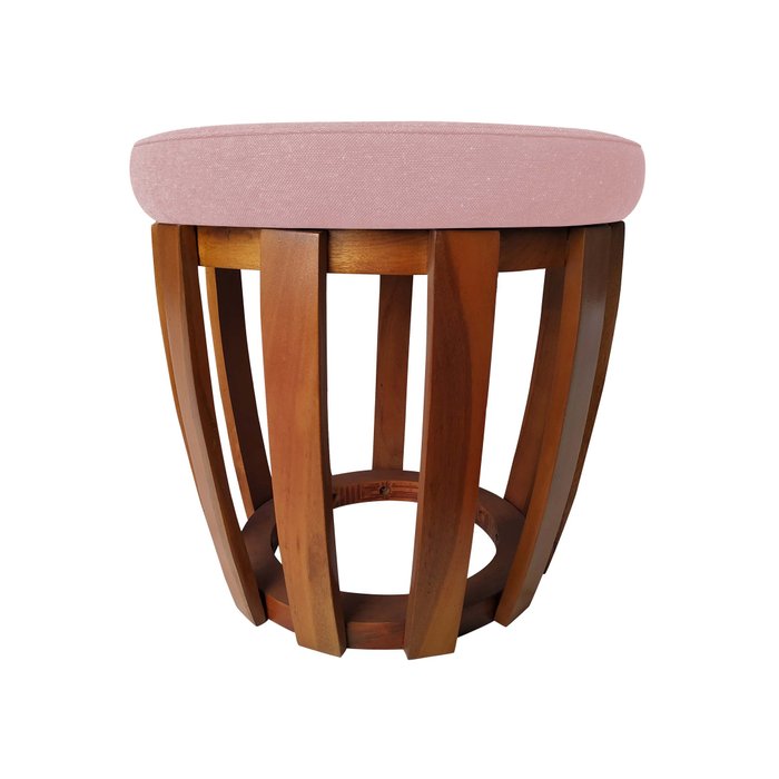 Puff/Banqueta Tamborim – Madeira e Linho HOUSE MÓVEIS:salmão