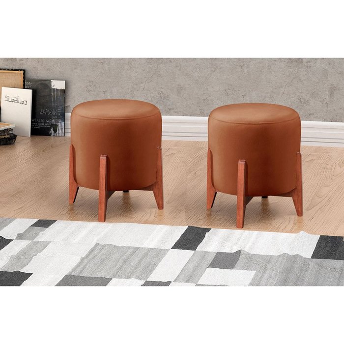 Puff Banqueta Thor Luxo em Madeira Maciça Castellar Móbile Caramelo