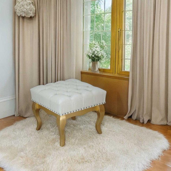Puff Banquinho Pequeno para Penteadeira Multiuso Luna Branco/Dourado