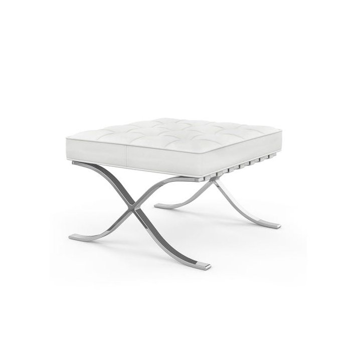 Tipo: Puff Modelo: Barcelona Cor: Branco Assento: Couro Natural Base: Cromado