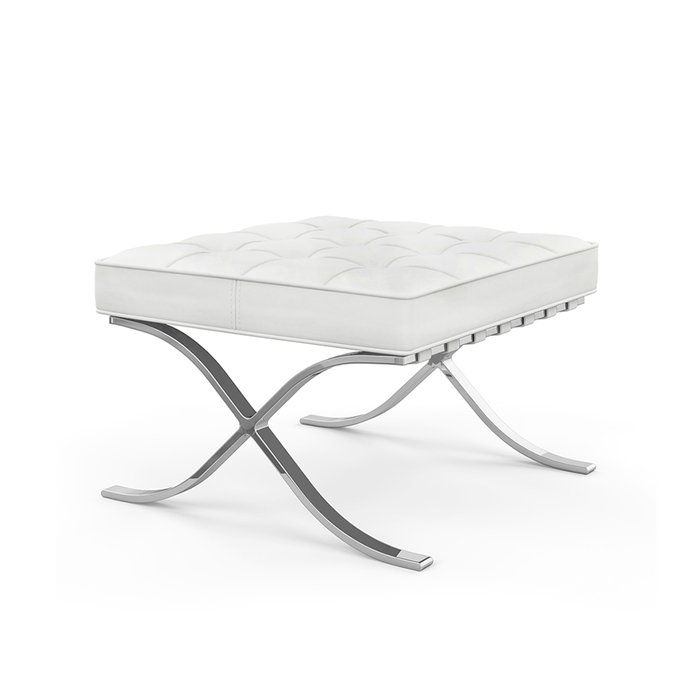 Puff Barcelona Inox em Couro Natural Branco