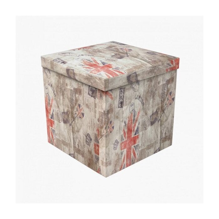Puff Baú Desmontável Londres Envelhecido 41cmx40cmx40cm Colorido