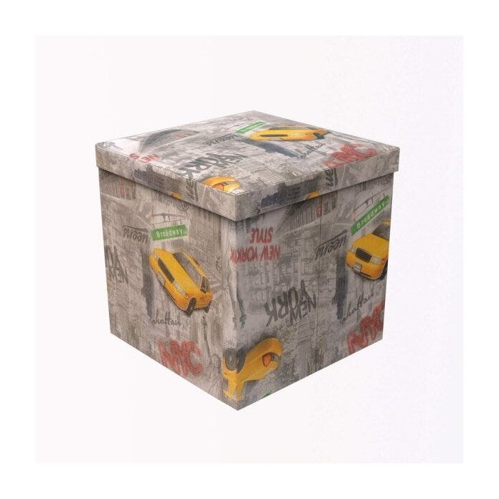 Puff Baú Desmontável New York 41cmx40cmx40cm Cinza
