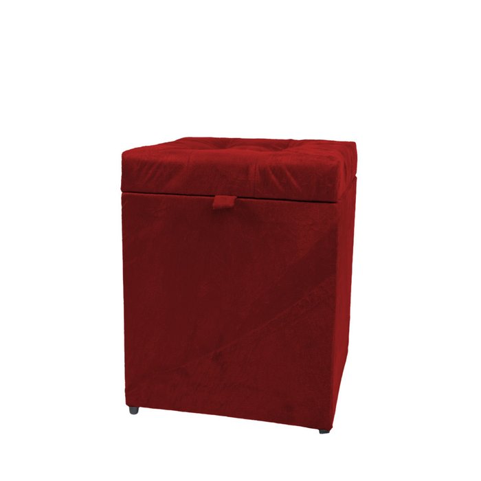 Puff Baú Estofado em Suede Amassado 1 Lugar Quadrado - Vinho